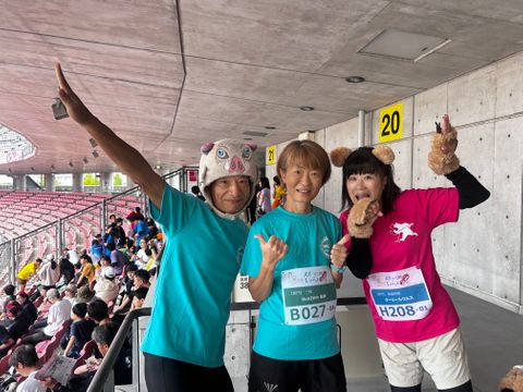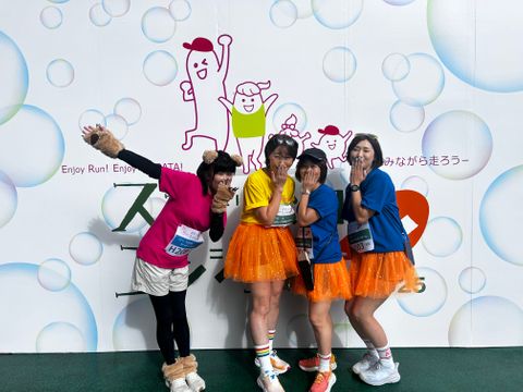 ファミリーで参加です。お揃いのユニフォームでタスキを繋ぐレースは絆が深まります。美味しいものがたくさんあり、楽しいライブがあったりと、毎年楽しみにしています。ベストドレッサー賞狙います!