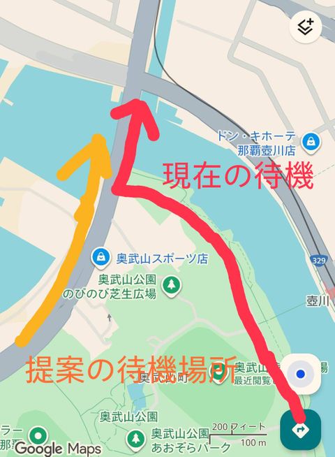 待機場所を奥武山公園の外に拡大し、軍港方面に向けて待機列を延ばすことを提案します。