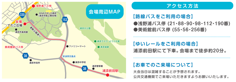 大会当日は混雑することが予想されます。公共交通機関でご来場いただきますようお願いいたします。