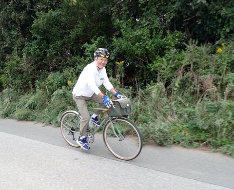 名古屋の友人に誘われ、東京から二泊三日で参加しました。4月にはオープンカー仲間と半島を一周して下見をしましたが、クルマでは何でもない上り坂が自転車だときつく感じました。でも大会三日後に古希+1を迎える私にとって、63kmを完走出来たのはとても良いプレゼントになりました。