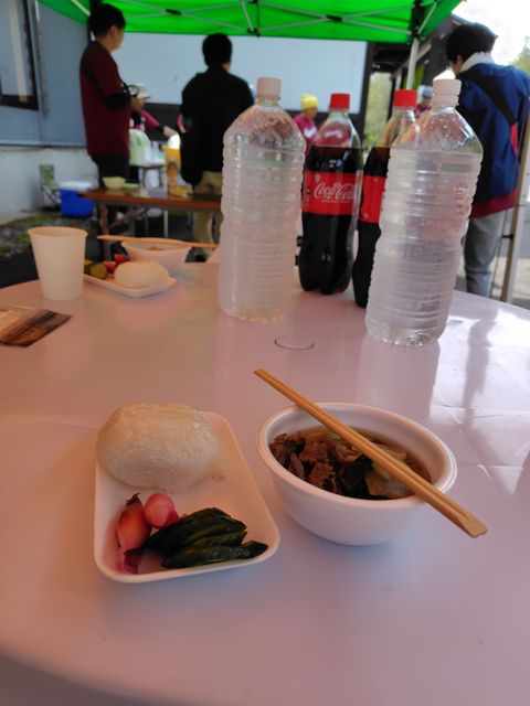 エイドでも、そば、新米のカレーなどのご馳走でもてなされ、北天満宮ASでは初めて熊🐻の肉を食べました。美味しかった😁