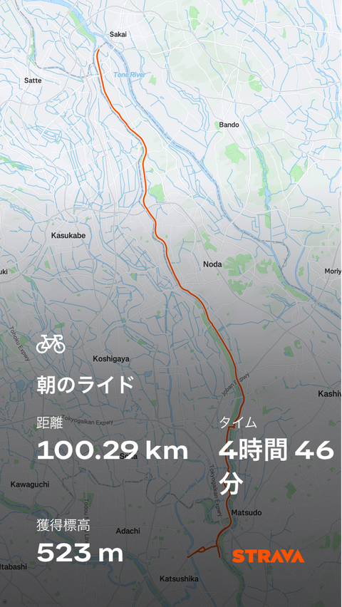 柴又公園 ⇒ 三郷流山有料橋(右岸→左岸) ⇒ 関宿城跡(チェックポイント・エイドステーション)折返 ⇒ 流山橋(三郷駅付近)左岸から右岸 ⇒ 柴又公園