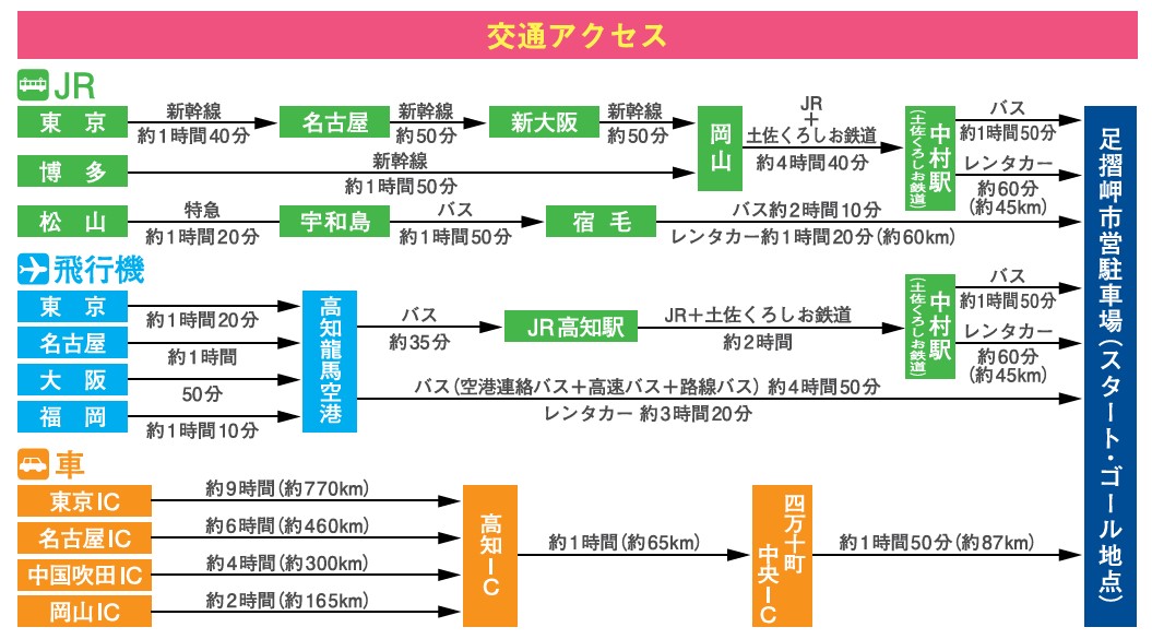- 高知県土佐清水市 足摺岬市営駐車場(2/14・2/15 集合・スタート・ゴール)