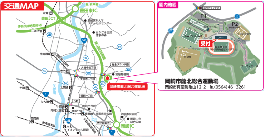 - 愛知県 岡崎市龍北総合運動場内陸上競技場(マルヤス岡崎龍北スタジアム)及び園路