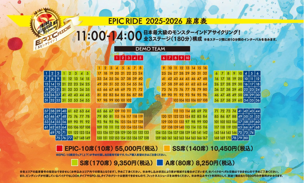 ※「AIR CYCLE Fitness EPIC RIDE(EPIC-10席)・sokojikara(SKJ-10席)」は団体申込不可。