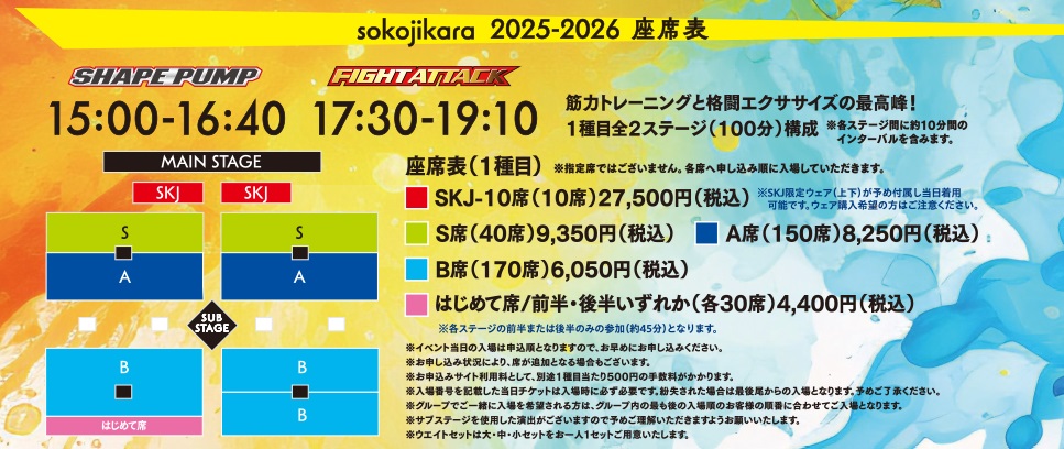 【SHAPE PUMP(15:00~16:40)・FIGHT ATTACK(17:30~19:10)】