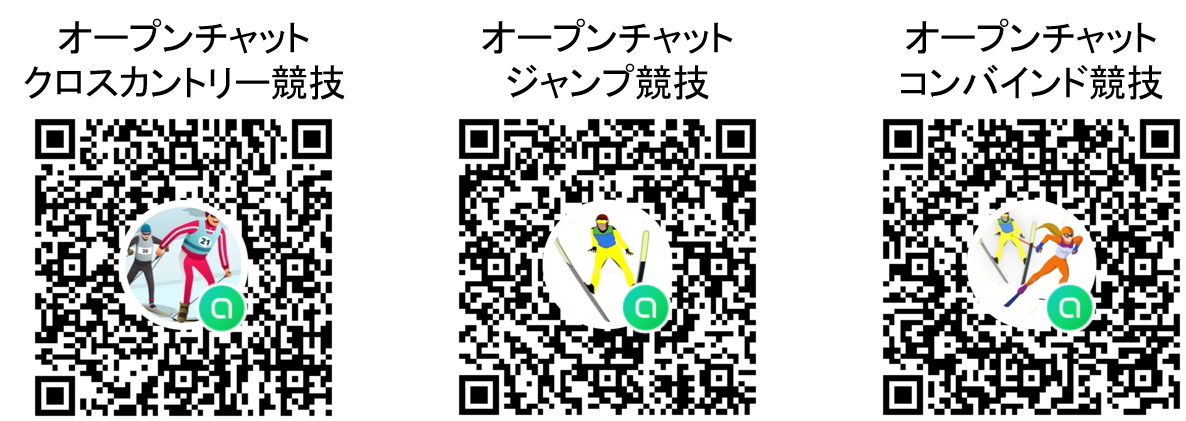 LINEオープンチャットにて大会の情報を発信しますので、チームリーダーの方は各種目のQRコードから令和7年12月25日(木)までにLINEオープンチャットに参加していただきますようお願いいたします。