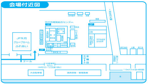 (8)更衣場所は支所前の「平戸市生月町開発総合センター」をご利用ください。(1階/男子、2階/女子)