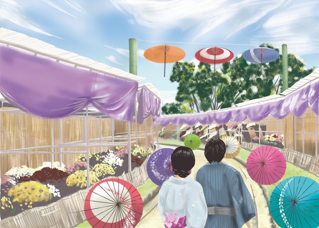そして、ゲストハウスで「焼きたてのピザ」を食べ、杉村公園で「はたごんぼコロッケ」を頬張りながら、アンブレラスカイと菊花展を楽しむ充実したコースです。