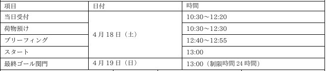 ・本大会では収容車の用意はありません。リタイア後は、各自の責任でゴール地点まで移動してください。