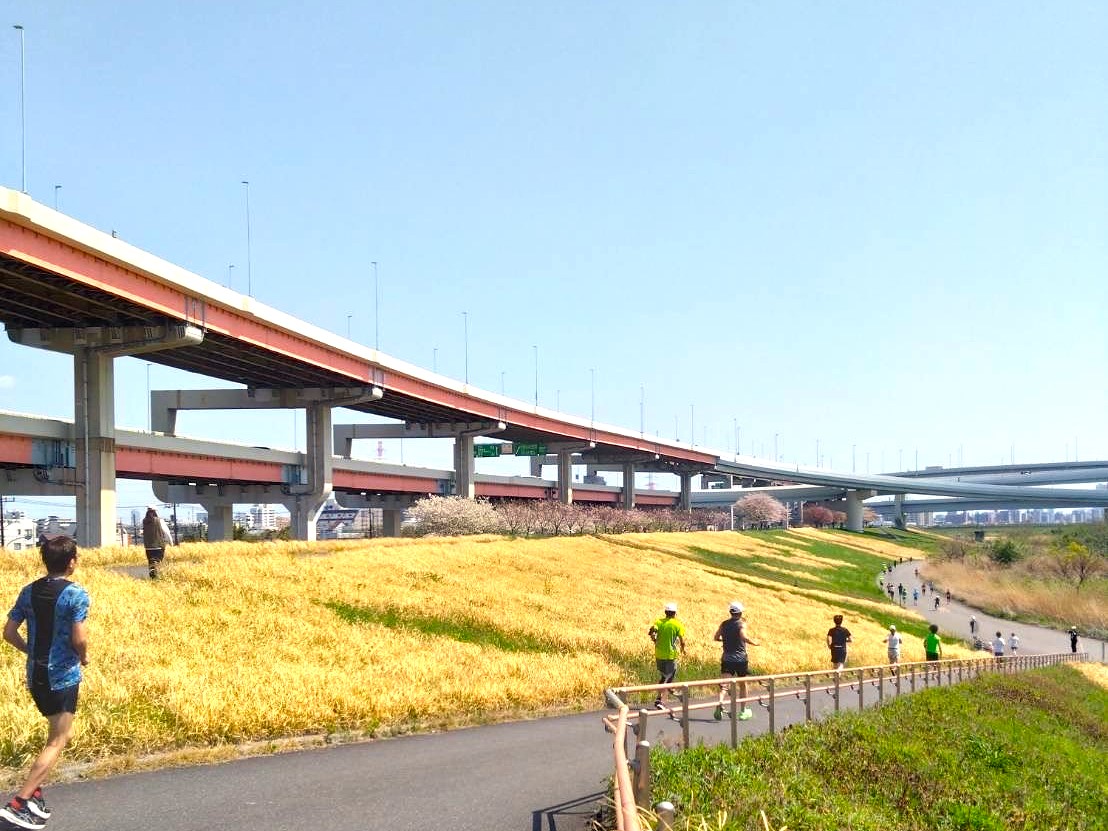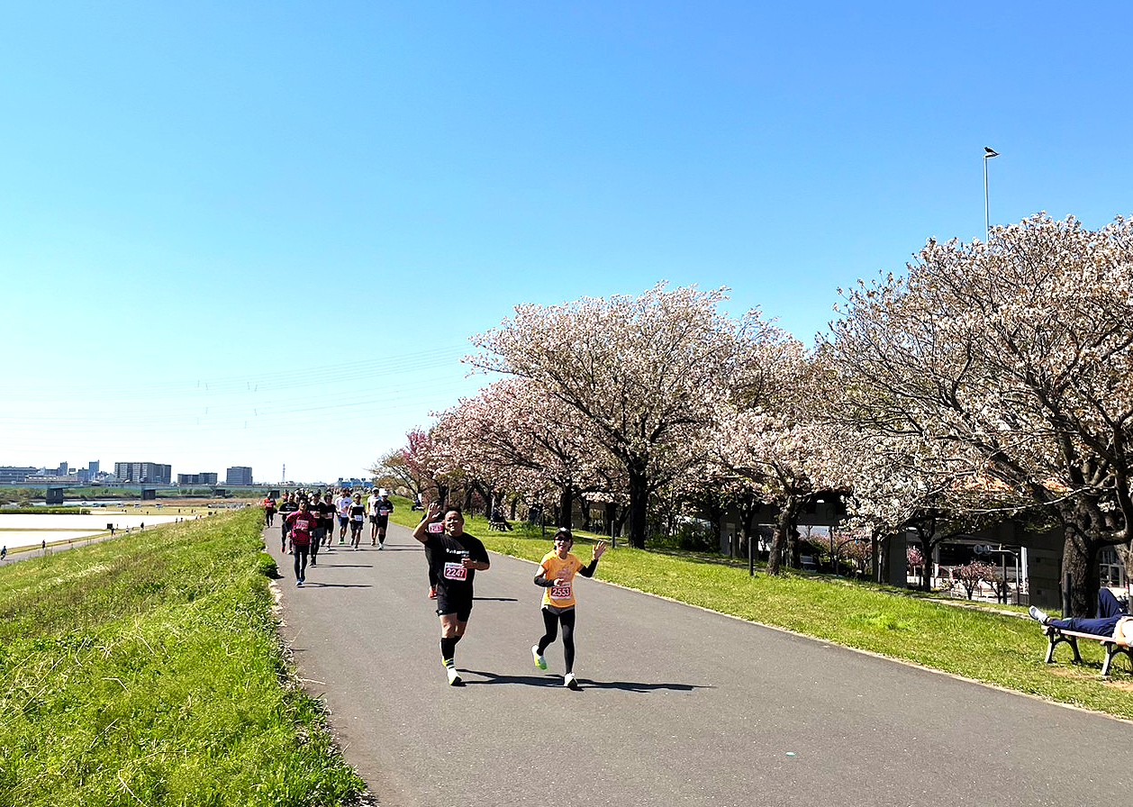 桜並木から五色桜大橋、遠くに東京スカイツリーを望める素晴らしい景色の中で走りましょう!