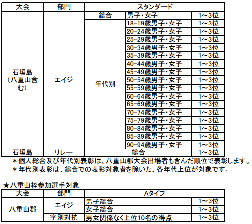 ※八重山郡大会は、八重山(石垣市/竹富町/与那国町)在住者限定。また、石垣島大会へも同時参加となります。