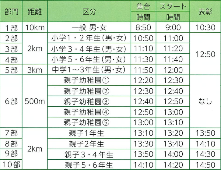 5.親子の部は、終始親子がお互いにタスキを持って走ってください(タスキは受付で渡されます)。