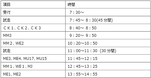 - 大会前日の試走時間は15:00〜16:00を予定しています。試走時にはコース立哨を配置しません。