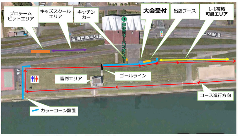 ・長良川会場では1-1のみ距離が長いためレース中の補給を認めます。
