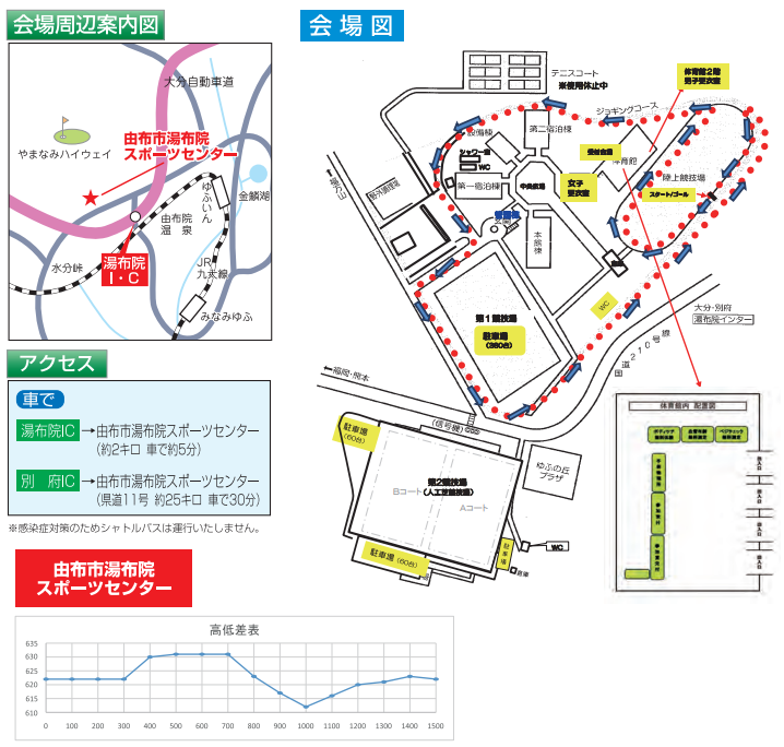 別府IC→由布市湯布院スポーツセンター(県道11号 約25km、車で30分)