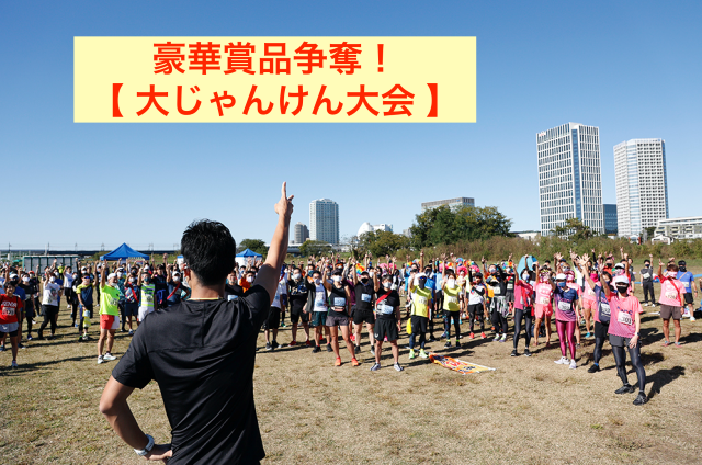 いろいろな方にご参加いただくエンジョイリレーマラソンの大会賞品は、大会結果にかかわらず全ての方に獲得チャンスがあります。豪華賞品がもらえる「大じゃんけん大会」に是非ご参加ください!