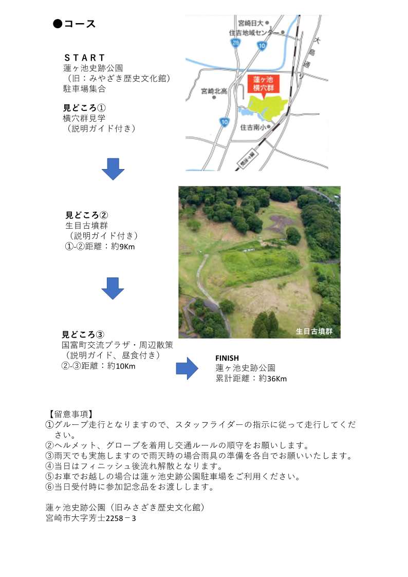 - 約36km(蓮ヶ池史跡公園~生目古墳群~国富町交流プラザ~蓮ヶ池史跡公園)