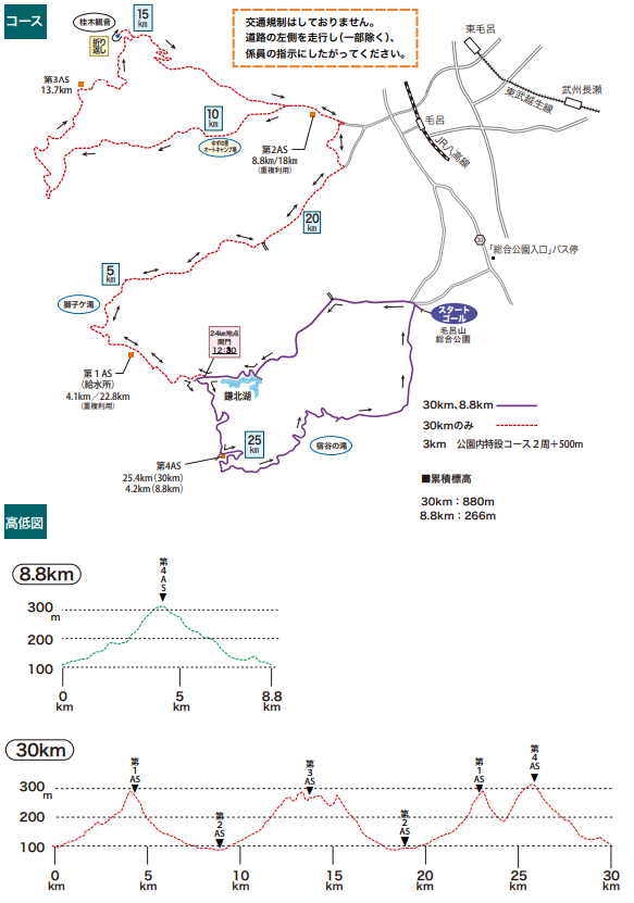 ■交通規制はしていません。自動車等の車両や歩行者との接触がないように安全に留意して競技に臨んでください。