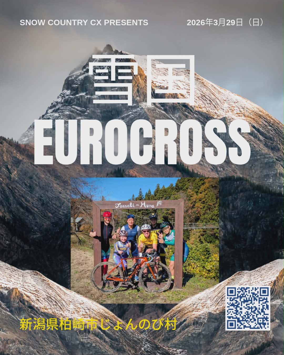新潟県の美しい自然に囲まれたじょんのび村にて、第1回 雪国シクロクロスイベントを開催いたします。今回は、参加者を限定した「プレイベント」となります。初心者から上級者まで、どなたでも満足いただける、ダイナミックなコースをご用意しております。