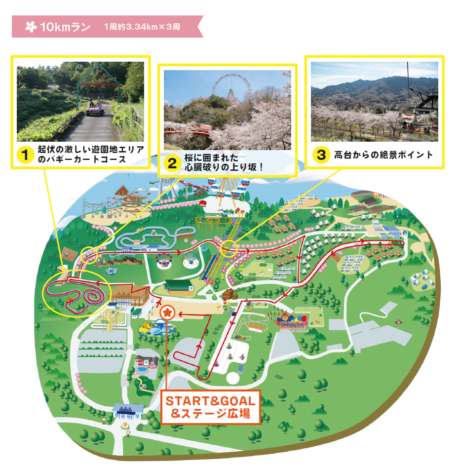 園内周回コース(バギーカートコース含む)1周約3.34km×3周、合計10km