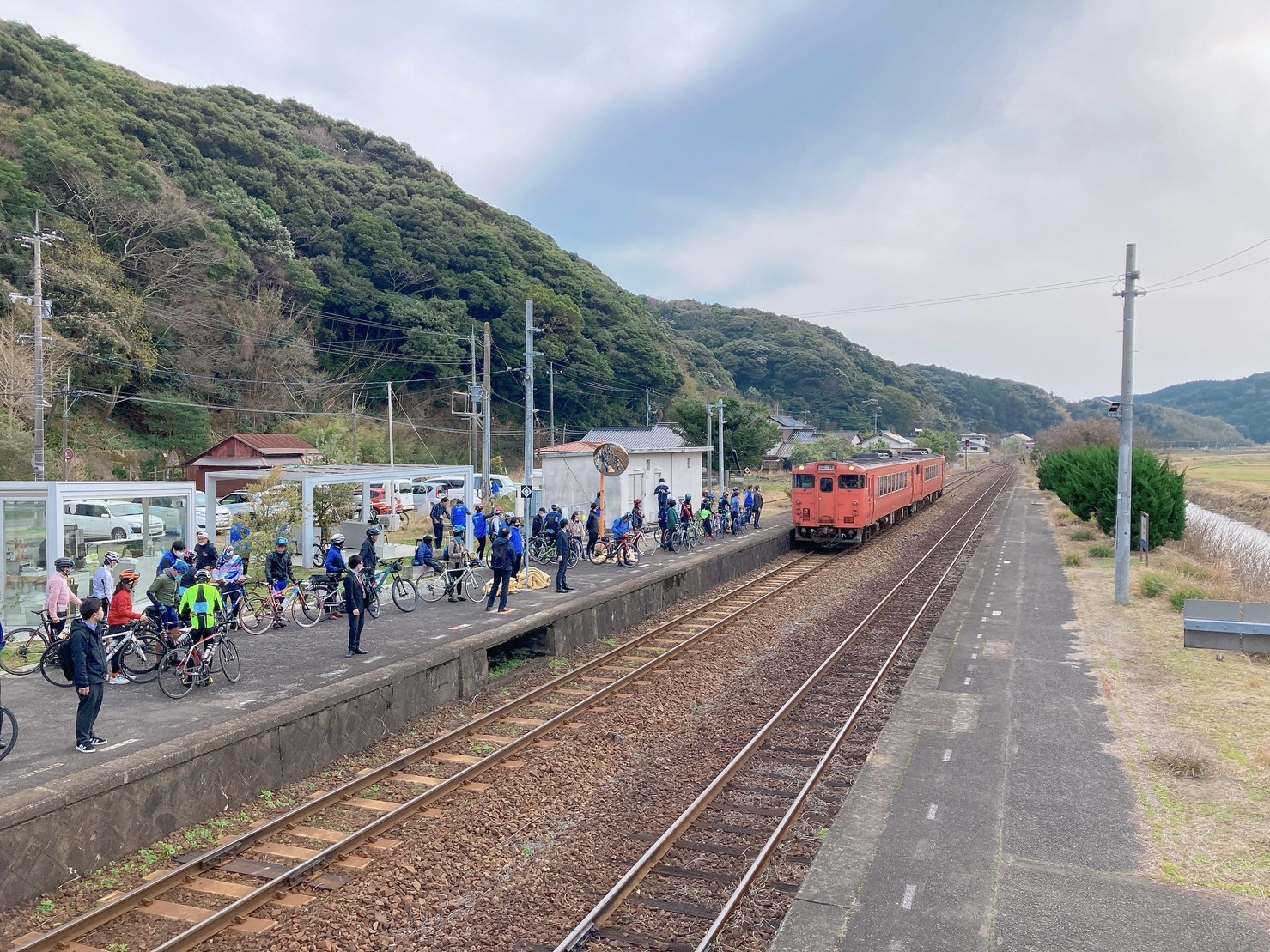 ラポールゆやをスタート・ゴールに、日本海に臨む国道191号線を西に移動し、川に沿って粟野川河川公園を目指します。次に、粟野川をさらに遡上、滝部を経由しJR特牛駅まで西走。その後、下関市の景勝地である海士ヶ瀬公園を目指して北上します。休憩後は折り返してJR阿川駅へ移動し、JR阿川駅からJR人丸駅までサイクルトレイン(臨時列車)に乗車していただきます。