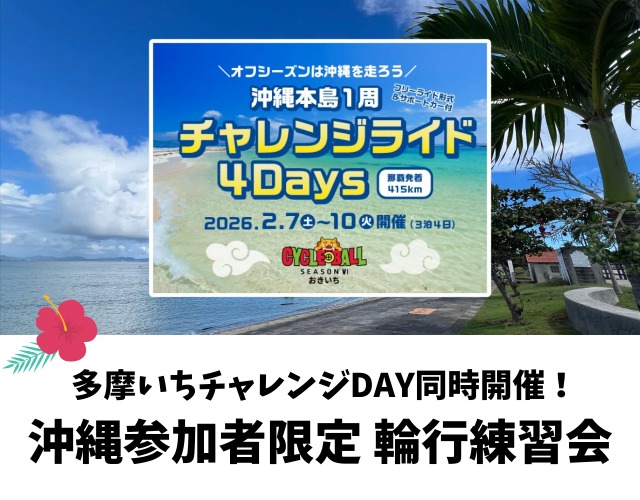 サイクルボールにエクストラステージ編として登場した「おきいちステージ(沖縄1周)では、2026年2月に「沖縄本島1周チャレンジライド4Days」を開催します。