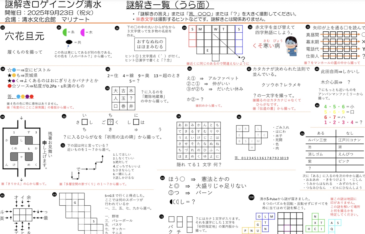 ・スタート30分前に地図と謎解き一覧を見ることができます。