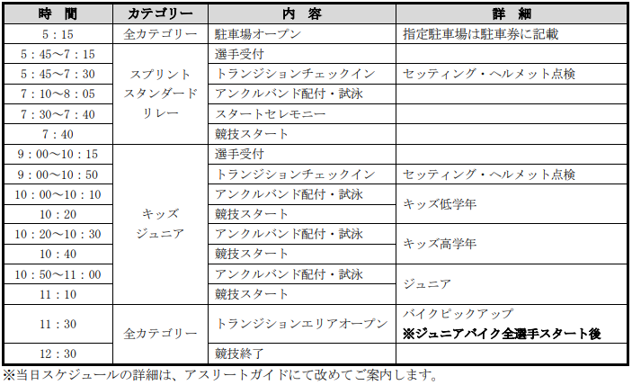 ※当日スケジュールの詳細は、アスリートガイドにて改めてご案内します。
