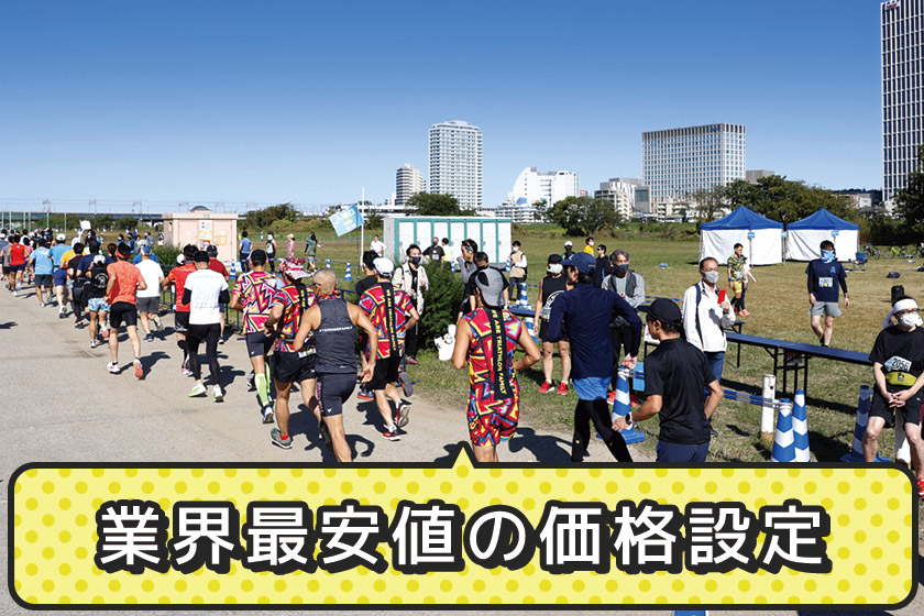 荒川ハーフマラソンは他大会に比べ大会参加費を低価格に設定しています。それでも、 「業界No.1の計測技術」「タイム速報サイトのサービス」「ゲストの応援」など、荒川ハーフマラソンならではのサービスを提供いたします。