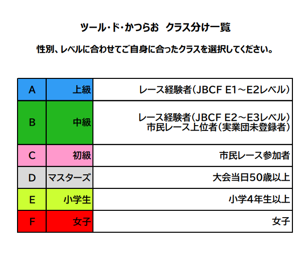 - [参加対象]ツール・ド・かつらお参加選手