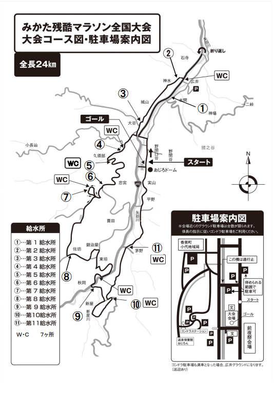 ※補給食は給水所、ゴール会場共に個別包装のものを提供いたしますが、必要と思われる方は予めご準備下さい。