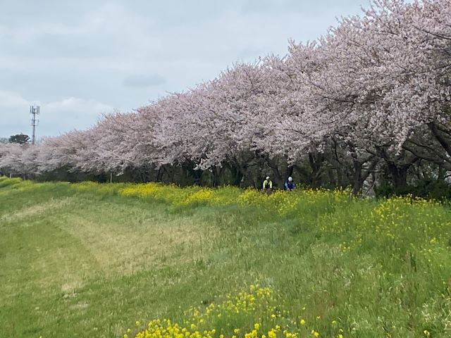 菜の花と桜が咲く春うららの小貝川を走り、筑波山麓平沢官衙遺跡で折返し手賀沼に戻る110km。