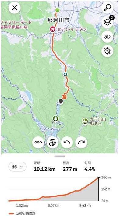 全て国道385号線 現人橋~中ノ島公園~筑紫耶馬渓~南畑ダム堤防着(終点)