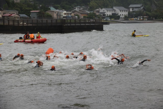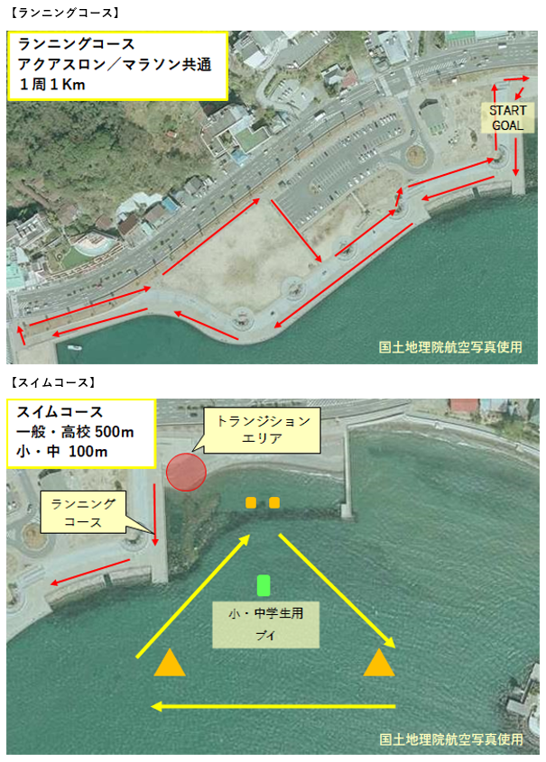 ・スイムは下田港湾内特設コース、ランはまどが浜海遊公園内特設コース(1周1km)