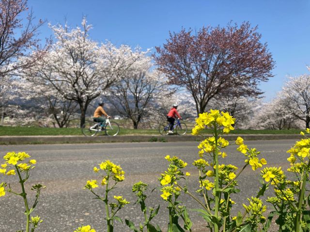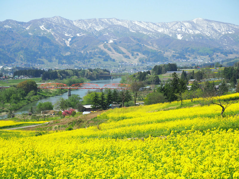 ◎菜の花、千曲川、残雪の北信五岳が美しい春の北信州