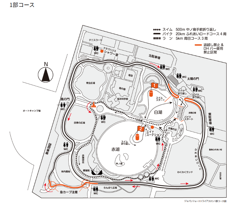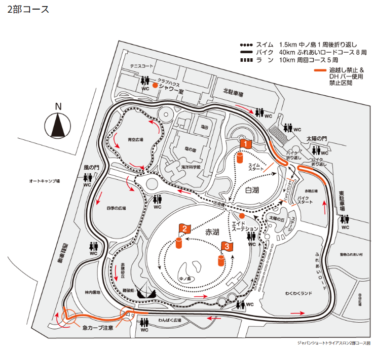 ※各部スイムの制限時間の設定があります。(バイク競技のスタートとフィニッシュの交差地点の危険を回避するため)