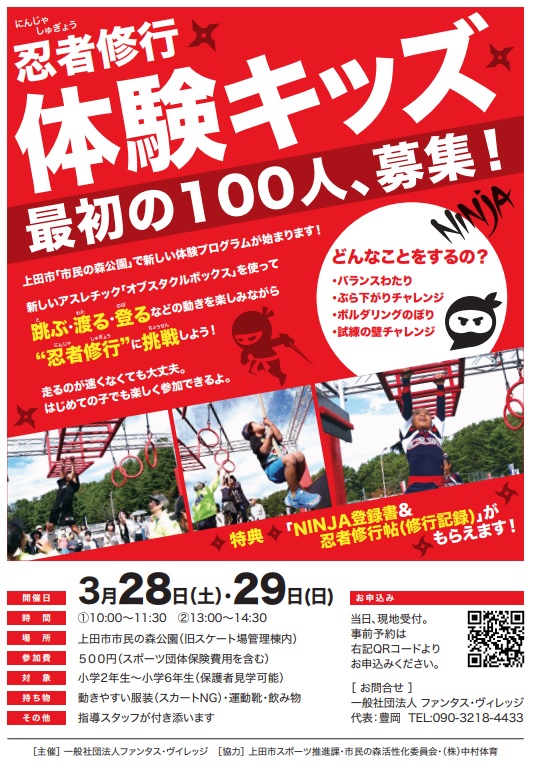 市民の森で体験しよう!忍者修行 体験キッズ!最初の100人、募集!