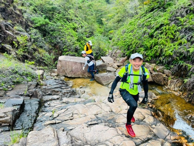 前半は沢沿いや岩場を進む、まるでジャングル探検のようなルート。