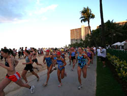 ヒルトン・ハワイアン・ビレッジ横にあるアメリカ軍専用のリゾート・ホテル、ハレコア・ホテルが主催するバイアスロンとキッズイベント。去年の参加者の年齢層は4歳から81歳までと幅広く、健康とコミュニティーのために毎年開催されているイベントです。去年の参加者は制限人数一杯の約430人でそのうちケイキ(子供)は約80人。レースはまずランニングからスタート。リゾートの中を走るので颯爽と応援する人たちの中を駆け抜けるのが気持ちよい。そしてスイムへトランジション。リーフ内の穏やかな水域にブイが設定してあり、ライフガードも十分に配置されているので安全です。ロングとショートがあり、レベルによって距離が選べるのも魅力です。ケイキ(子供)のコースはビーチを駆け抜けて、足が着くぐらいの浅瀬を泳ぎ、最後にビーチ上のゴールまでさらに駆け抜けるというランースイムーランでファミリーの声援の中、子どもたちも心から楽しんでいます。そしてレース終了後の表彰式では、クジで様々なスポーツグッズやスポンサー賞があたる抽選会や、リフレッシュメントなども用意されています。初心者でも気軽に参加できるイベントですが、日本からの参加者がまだ少ないので、ローカル気分が味わえるこのイベントにぜひ参加してみてはいかがですか?スポナビハワイドットコム(http://www.sponavihawaii.com/)は、ローカル参加型のイベントに日本からの方が参加しやすいサポートを行います。