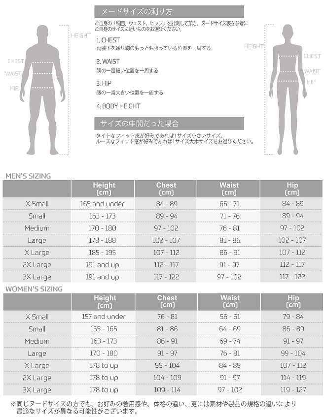 オリジナルジャージ、ウィンドブレーカー、ビブショーツのサイズについては下記サイズチャートをご参照ください。