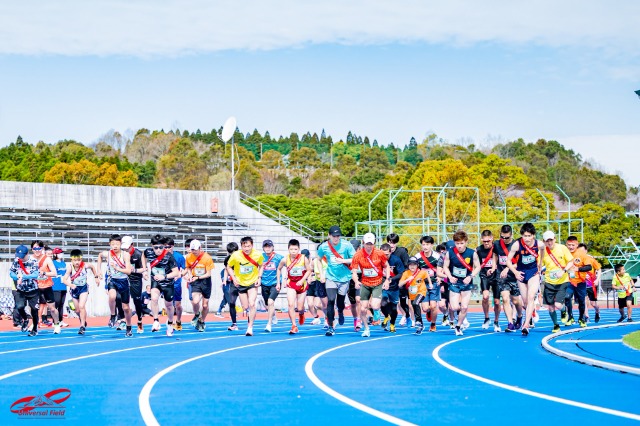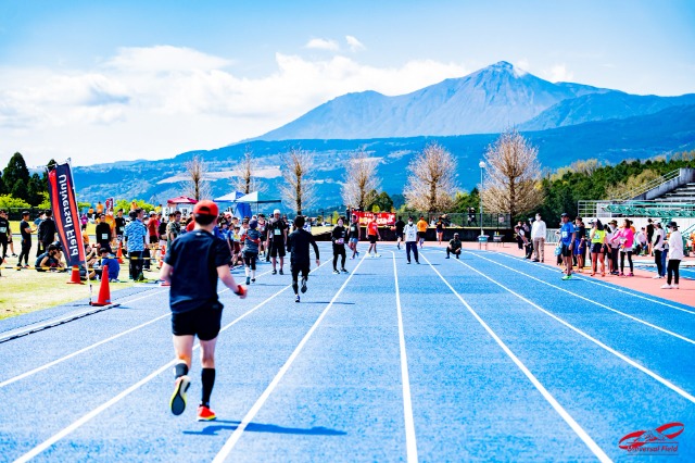 会場の小林市陸上競技場では霧島連山を間近で感じ、最高のロケーションで走ることが出来ます!