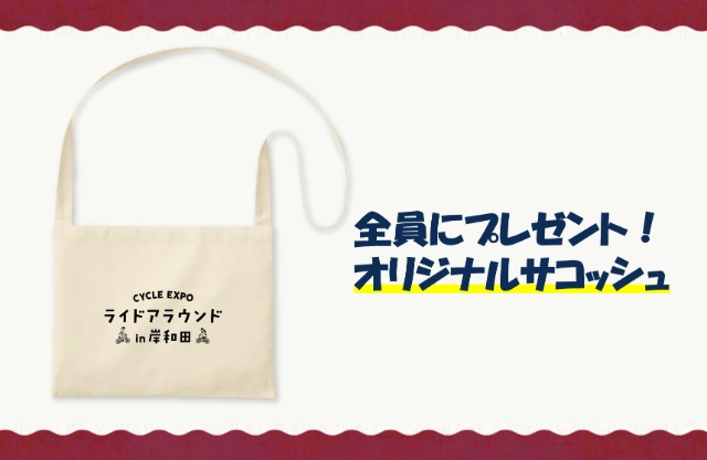 会場にて、オリジナルサコッシュをプレゼントします。当日のライドにもご利用いただけます。