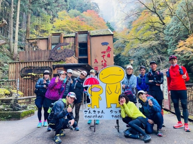 【お車でお越しの方】9:50までに、走れる服装で 「赤目滝バス停」(三重県名張市赤目町長坂)へ直接お越しください。【電車でお越しの方】 9:30までに、近鉄大阪線 「赤目口駅」バス停 に、着替えを済ませた状態で整列集合してください。その後、9:40発「赤目滝行き」バスに乗車します。
