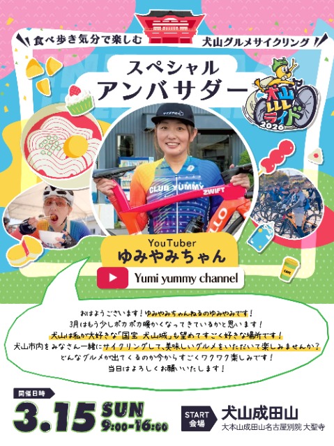 レレレライドは、2026年4月に予定されている自転車道路交通法改正をきっかけに、 「楽しく走りながら、正しい自転車の乗り方を学ぶ」ことを目的とした、 犬山発のグルメサイクリング&ファミリーイベントです。 会…