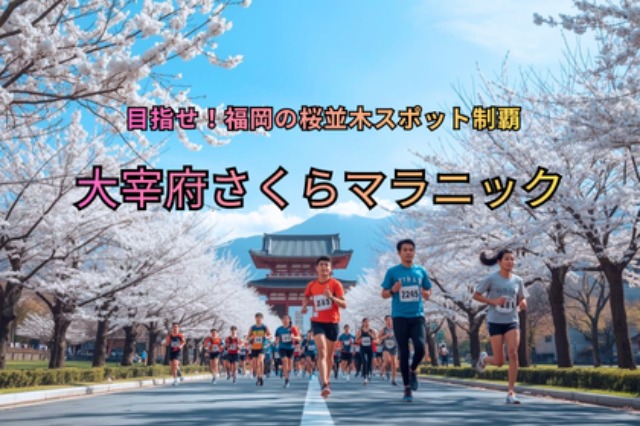 記念すべき第1回大会!大橋駅発、走力に応じた組み分けを行い、桜満開の街並み、桜並木スポットを巡り、花見スポットで休憩・給水しながら、特別エイドで「梅ヶ枝餅」で元気を補給、ゴールの大宰府市唯一の天然温泉…