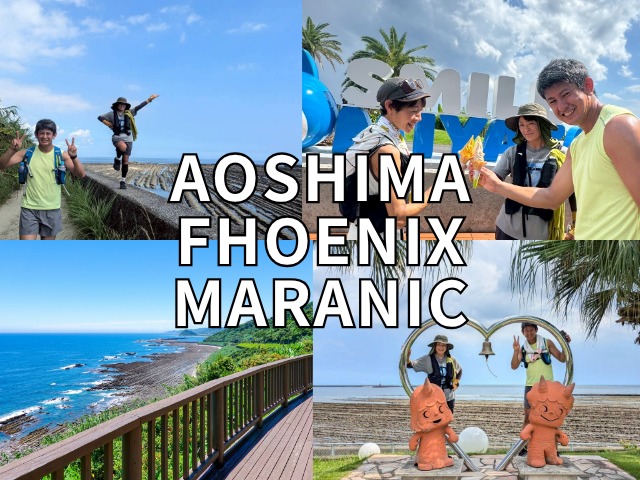宮崎県総合運動公園から青島神社、道の駅フェニックス、日南海岸線を走って野島神社を折り返し、ゴール地点「神話の湯」を目指す(全22km)。フォトジェニックなポイントを巡り写真を撮りながらグループランを楽し…