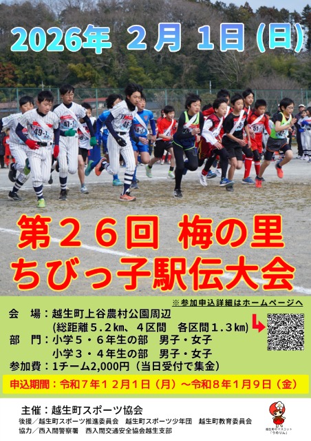 第26回梅の里ちびっ子駅伝大会を開催します! 多くのチームのご参加をお待ちしております。
