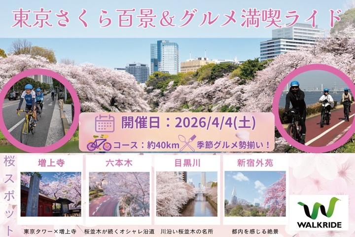 2026年4月4日(土)開催 ―― 春爛漫の東京を、自転車で巡る ―― 一年で最も美しい季節、桜が街を彩る春の東京を舞台に、特別なサイクリングイベントを2026年も開催します。 スタートは八丁堀にある SENSHA Bic…