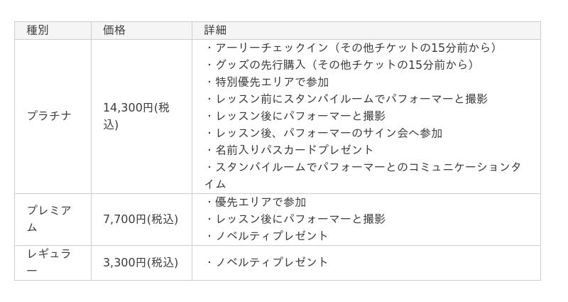 参加エリアや特典内容が異なる3種類のチケットを用意しました。参加者の目的に合わせて購入できます。どのチケットでもプログラム前に会場内でセルフ撮影ができます。